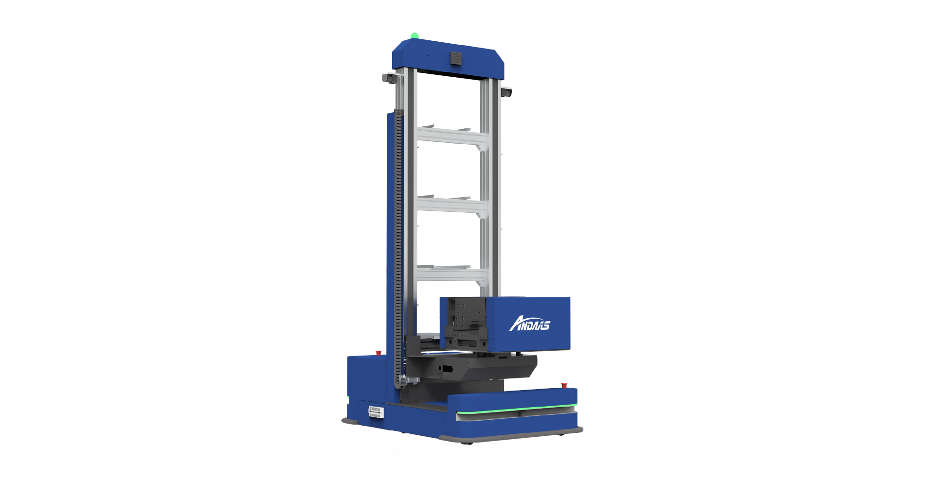 多重安全防護(hù):前/后激光避障、機(jī)械安全觸邊、急停按鈕、聲光報警等安全防護(hù)。